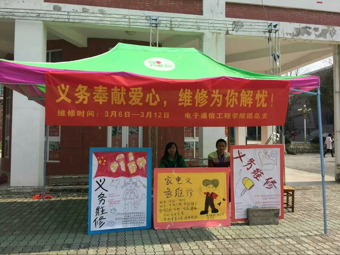 3月6日至12日,电子通信工程学院团总支结合专业特色,在校园内开展了为期一周的小电器义务维修活动。义务维修活动面向全校师生,涉及面广,影响力大。在此次活动中,维修的电器种类也比较丰富,电脑、充电宝、吹风机、台灯等都在维修范围内。师生送来的电器会有值班人员登记电器名称、编号、故障所在、联系人及其电话,再送给维修人员进行维修,最后将维修效果反馈给师生,活动共接收到200余件物品。在这次活动中,学生们发扬了不怕苦、不怕累的雷锋精神,争取为老师和同学们修好电器,为他们带来更多方便。
