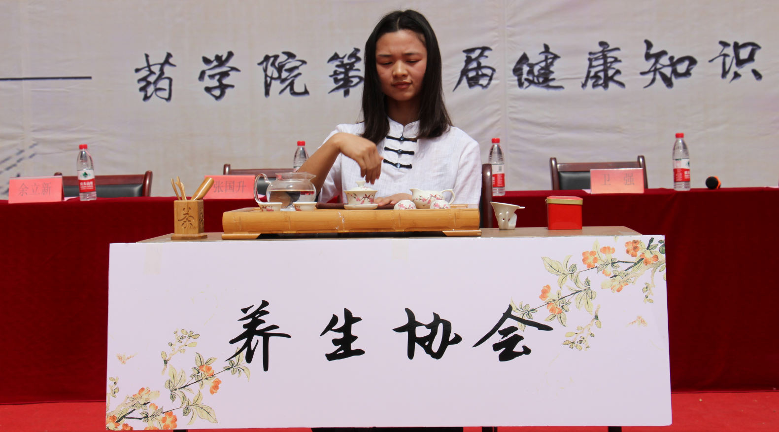 开幕式在药学院闪耀舞蹈社的动感舞蹈《玻璃珠》中拉开序幕。随后由养生协会成员郑文静带来茶艺表演,并邀请观众品茶。