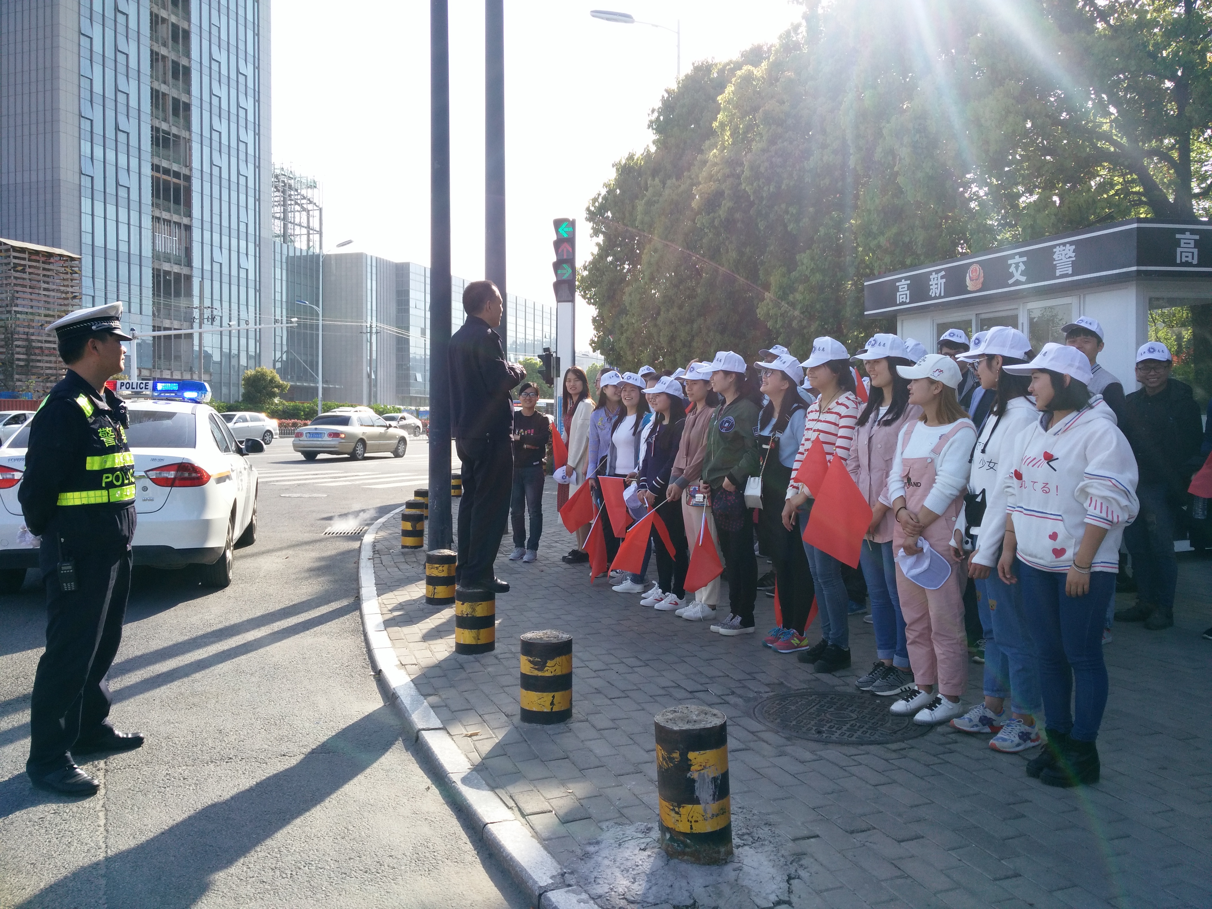 信息工程学院“白手套”志愿服务队与高新区交警大队联合开展路面现场安全教育和交通协管活动
