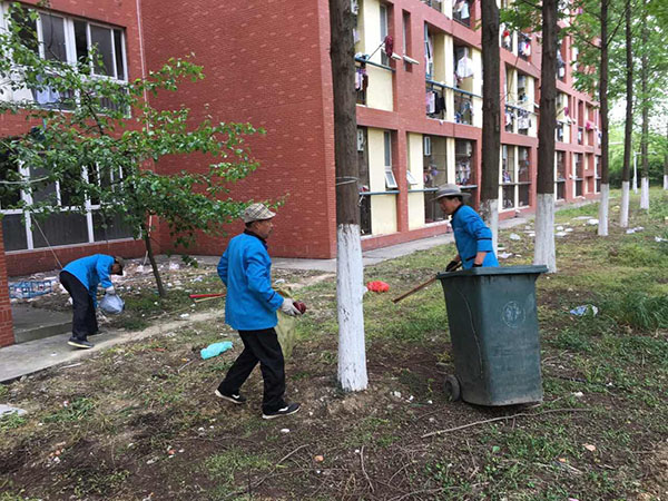 此次卫生清理活动开展范围为校园一期、二期、三期的草坪、绿蓠、校园广场、道路、围墙周边等露天公共区域。在总务处管理人员及物业公司人员的现场指导下,所有保洁参与人员分组同时进行并划分相应卫生责任区,以确保区域卫生的有效清洁。在连续劳动约3小时后,全面清理了校园绿化带内的白色垃圾和杂物、树木悬浮物、楼宇外围卫生死角,铲除了公共区域小广告、擦拭干道垃圾箱60余个、集中清洗垃圾桶近200个。