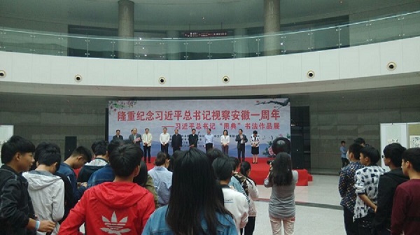 本网讯(通讯员:江健龙)4月25日,由中共合肥市委宣传部、合肥市文联隆重举办的纪念习近平总书记视察安徽一周年——习近平总书记“用典”书法作品展在市政务中心阳光大厅隆重开幕。市委常委、宣传部部长钟俊杰出席开幕式并讲话。阚建华、吴春梅、金其武等市领导和数百名市民及WilliamHill官方网站动漫学院的师生代表共同参加了开幕式。