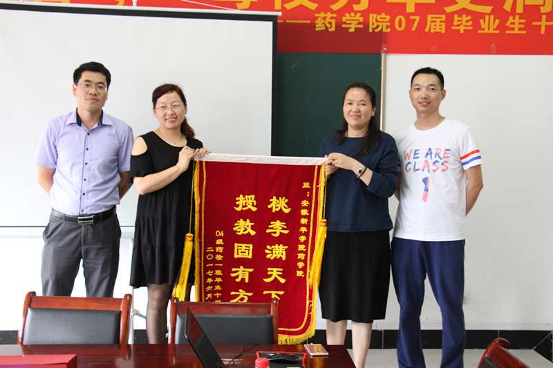 回顾工作生活汇报会上,毕业生们对学院近年来的发展和取得的成绩感到骄傲和自豪,向当年老师表示问候和祝愿,也感谢学校和学院的培养。余立新代表药学院对2007届毕业生返校表示欢迎,并表示会全力鼓励与支持毕业生返校聚会,也希望他们工作生活顺利,同时多与母校老师联系,指导学弟学妹就业、学习,支持母校事业发展。刘自平对同学们的归来表示非常开心,对他们取得的成绩表示肯定,希望大家一直保持联系,常回母校看看。