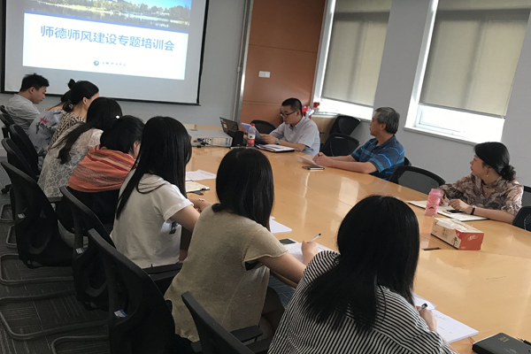 最后,范东生围绕新形势和新要求,希望老师们:一要深入学习相关的文件精神,从政治坚定、爱岗敬业、无私奉献的高度,结合自身实际情况,认真开展自查自纠及自我整改工作;二要以“国际化、高质量、有特色”为工作目标,强化师德意识,履行师德规范,不断提高师德水平和业务能力,增强教书育人的荣誉感和责任感,不仅做学生知识的传播者、智慧的启迪者,更要做学生人格的影响者、道德的实践者。