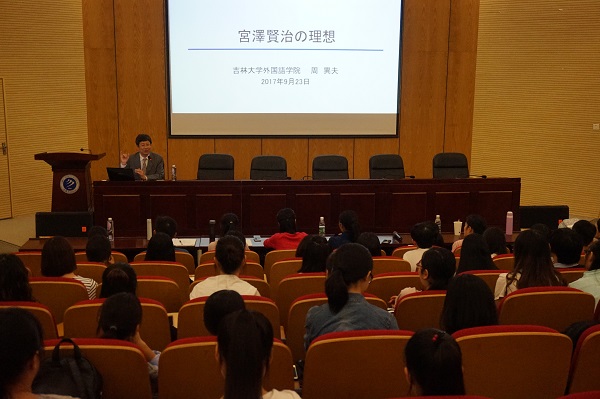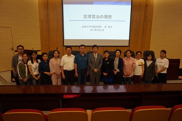 本网讯(通讯员:赵明)9月24日下午,外国语学院联合学校科研处邀请中国日语教学研究会会长、吉林大学外国语学院院长、教授、博士生导师周异夫教授在校学术报告厅为WilliamHill官网师生开展“亚洲共同体”系列学术讲座第四讲——“宫泽贤治的理想”学术报告。科研处副处长张帆、外国语学院执行院长邵玲及日语系全体师生共计一百余人出席聆听。本场讲座由日语系系主任宋志强主持。