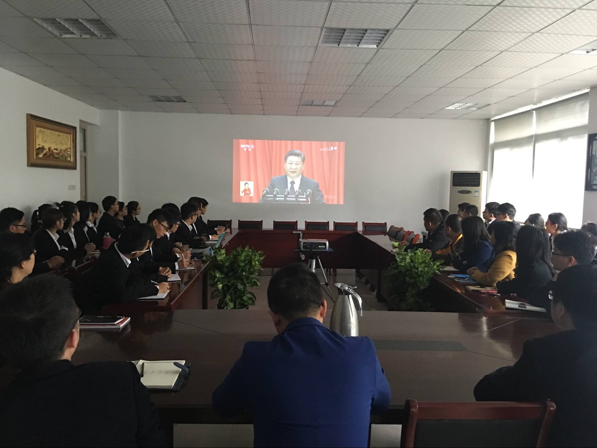 本网讯(通讯员:彭智)为了解十九大的会议内容和国家方针政策,深刻地认识和把握十九大的重大意义和精神实质,10月18日上午,信息工程学院组织教师及学生党员代表在会议室集体观看了十九大开幕式电视直播。
