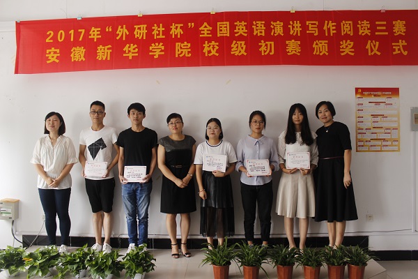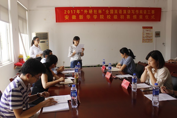 本网讯(通讯员:柳飏)为鼓励学生将专业知识运用到实践中,激发学生积极参加各类学科竞赛,近日,外国语学院举办2017年“外研社杯”全国英语演讲、写作及阅读三赛WilliamHill官方网站校级初赛颁奖仪式。外国语学院执行院长邵玲、教学副院长王志宏、行政副院长周景及相关教师出席了颁奖仪式。