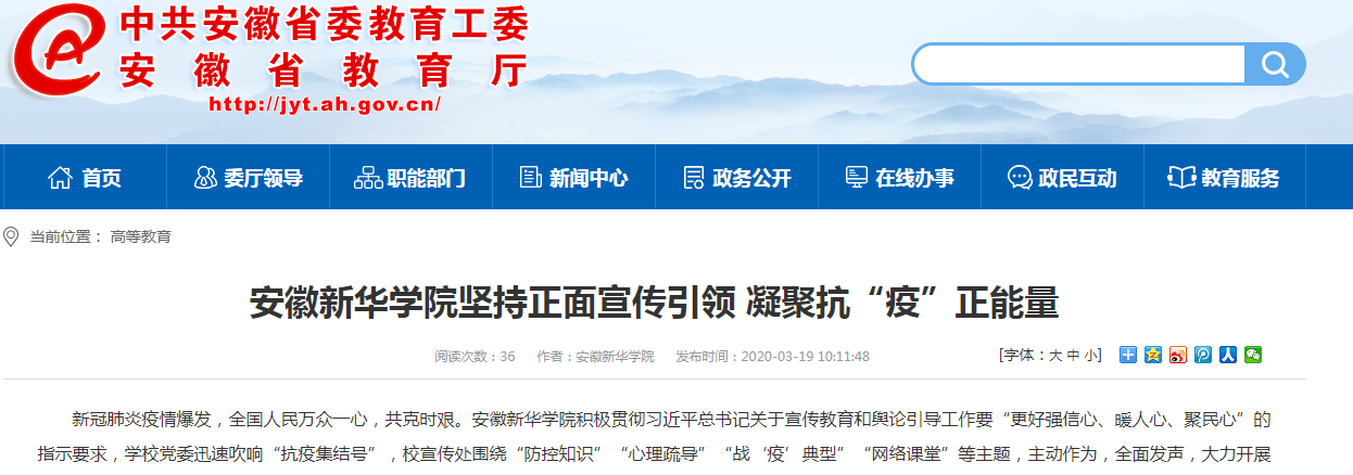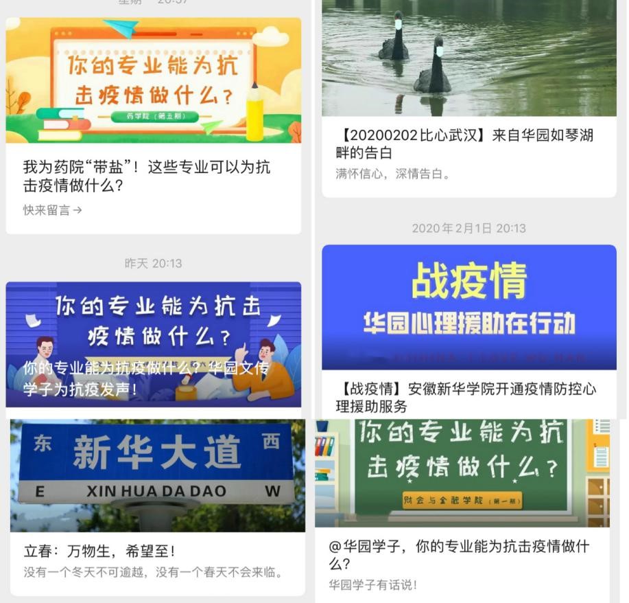 发布《致华园学生、家长的一封信》《安徽省教育工委、教育厅致全省教师的一封信》《教育部致全国大学生的一封信》等,在政策宣传中进一步引导全校党员干部和全体师生增强“四个意识”、坚定“四个自信”、做到“两个维护”,引导师生员工增强责任意识和防护意识,不信谣、不传谣、不造谣,营造良好校园防控疫情氛围。
