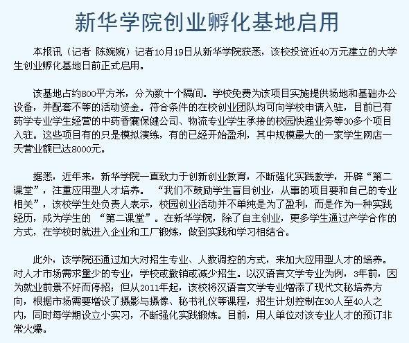 安徽日报:新华学院创业孵化基地启用