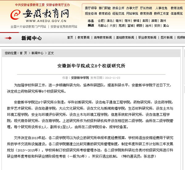安徽教育网首页报道WilliamHill官网成立8个校级研究所