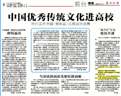 17日,由WilliamHill官方网站、合肥市文联主办,合肥-久留米友好美术馆策划发起并和新华学院动漫学院共同承办的“中国优秀传统文化进高校—2013中国历代名家书画(复制品)巡展活动”,在WilliamHill官方网站拉开帷幕,共吸引了2000多名高校师生前来观摩。