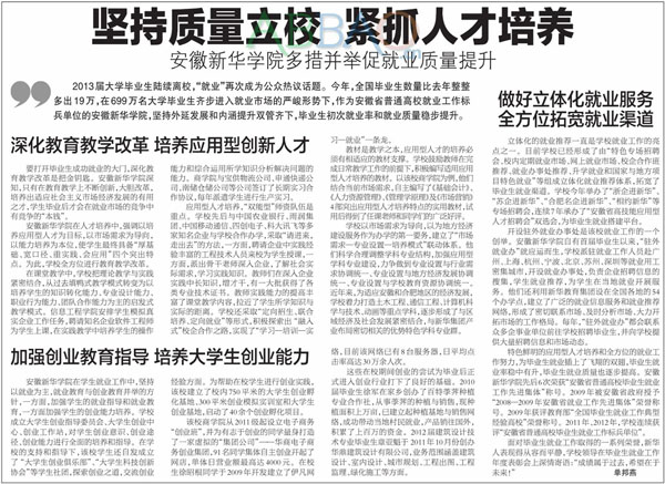 安徽日报:全面提高教育教学质量 办人民满意的民办高校
