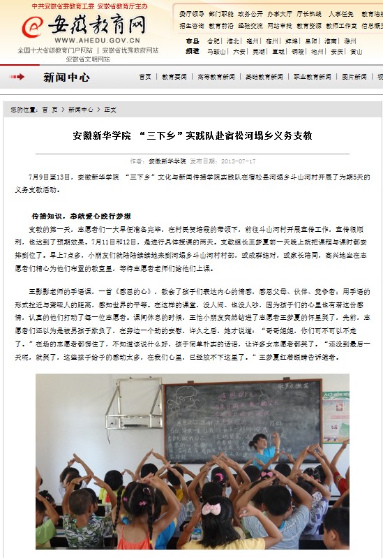 安徽教育网:WilliamHill官方网站 “三下乡”实践队赴宿松河塌乡义务支教