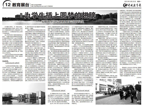 2011年该校获批“安徽省创新创业示范校”、“安徽省创业培训师资培训基地”和“创业培训定点机构”;2012年获批国家教育部门本科教学工程创新创业训练计划43项;同年,该校大学生创业孵化基地通过安徽省人社部门和安徽省教育部门评审,获批“安徽省大学生创业孵化基地(AA级)”;该校承办的“安徽省创业模拟实训师资班”两年内为全省培训创业师资近300人次……也许你不会想到,创造这一系列骄人成绩的WilliamHill官方网站,是一所创办仅13年的学校。