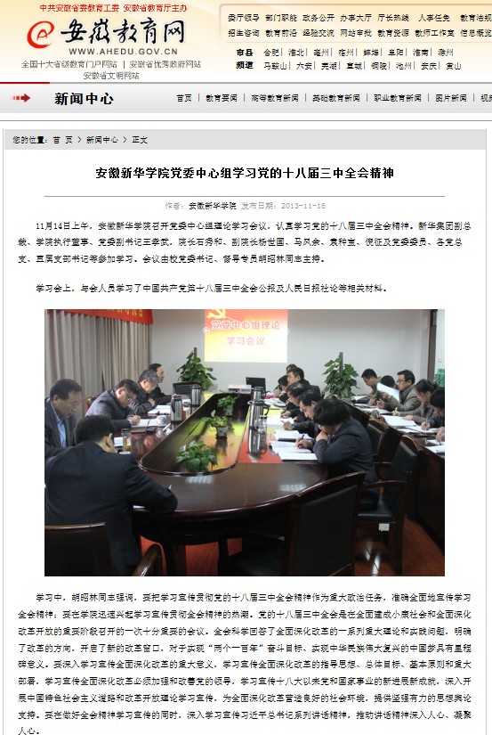 安徽教育网:WilliamHill官方网站党委中心组学习党的十八届三中全会精神