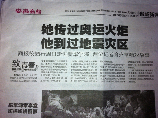安徽商报:商报校园行周日走进新华学院 两位记者将分享精彩故事