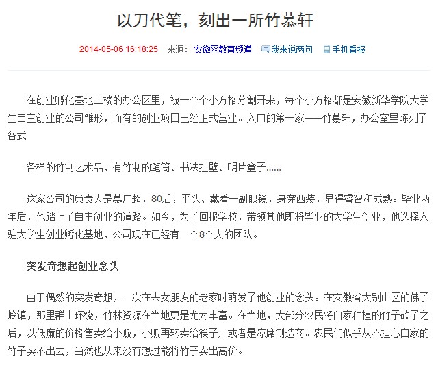 安徽网:以刀代笔,刻出一所竹慕轩