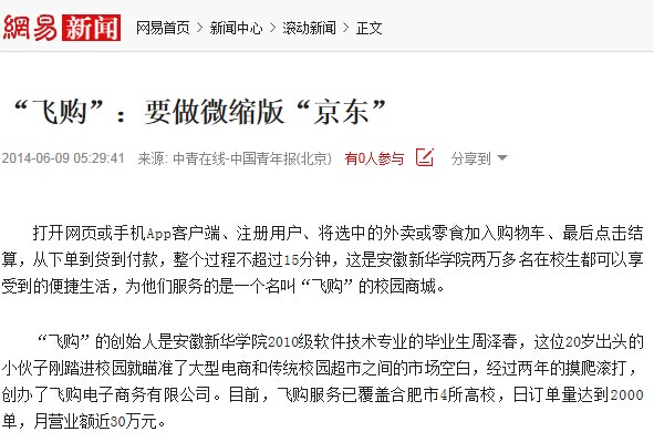 中国日报网:“飞购”:要做微缩版“京东”