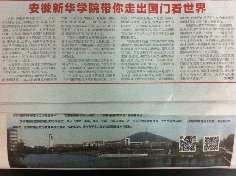 谈及下一步的发展方向,该院负责人充满信心。“相比较国内有些院校,我们的国际交流与合作项目尽管起步时间不长,但发展前景非常大。目前,我们正在积极与更多的海外高校联系,建立更多友好的合作关系,为广大学子提供更多的留学选择。” (陶文)