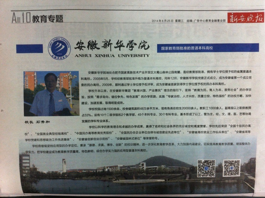 学校升本以来,在安徽新华集团“教育兴国、产业惠民”理念的指引下,坚持“教育为民、育人为本、服务社会”的办学宗旨,按照“需求导向、错位争先、特色发展”的办学思路,实施“专家治校、人才兴校、质量立校、特色强校”的治校方略,加快建设,加速发展,取得明显成效。