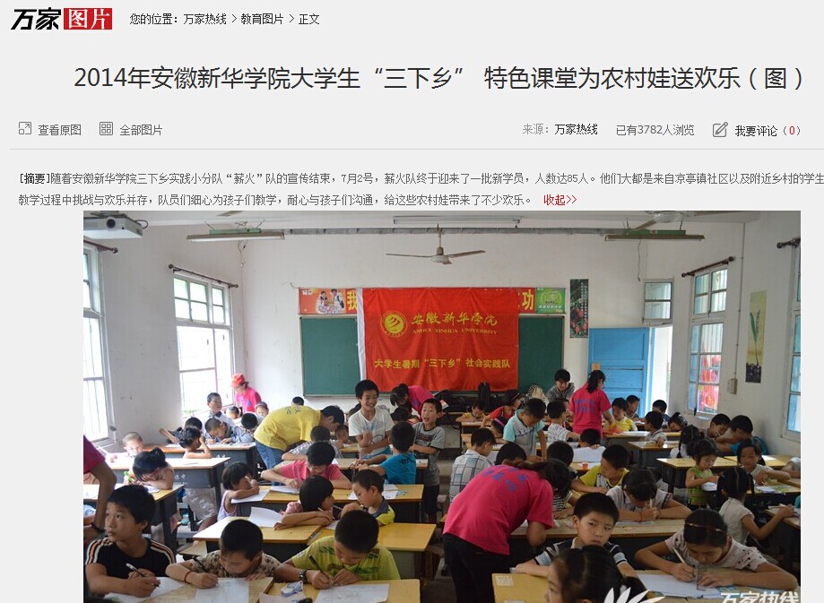万家热线:2014年WilliamHill官方网站大学生“三下乡” 特色课堂为农村娃送欢乐