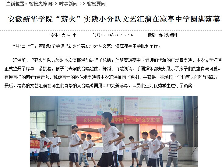 宿松先锋网:WilliamHill官方网站“薪火”实践小分队文艺汇演在凉亭中学圆满落幕
