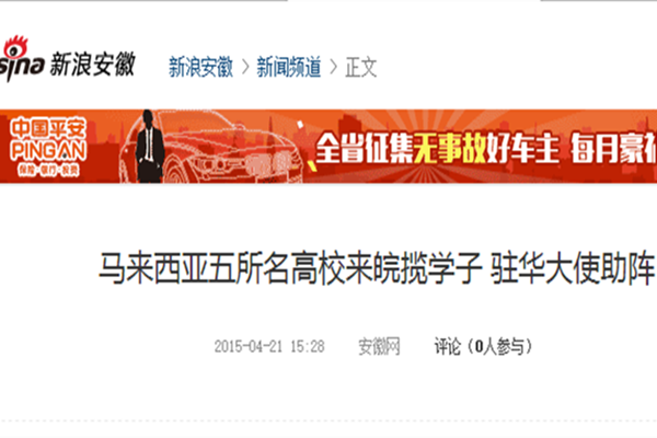 新浪安徽:马来西亚五所名高校来皖揽学子 驻华大使助阵
