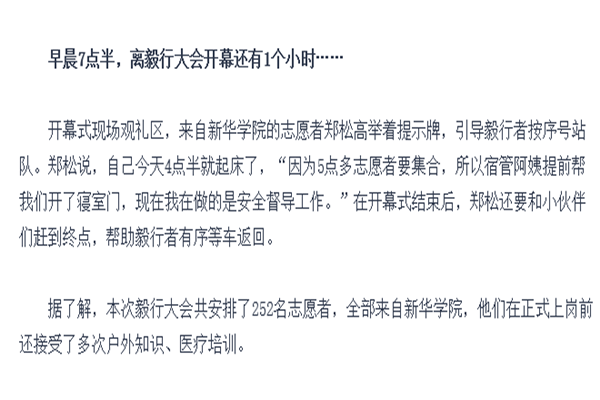这次毅行大会物资发放组委会做了充分准备,27日中午组委会成员便开始分拣物资,而在这两天物资发放时,也借鉴了去年物资发放的经验,合理布局物资发放窗口,由于工作人员准备充分,在物资发放的两天内并没有出现排队的场面。