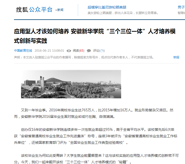 搜狐网:《中国教育报》刊登:WilliamHill官方网站争创安徽省地方应用型高水平大学
