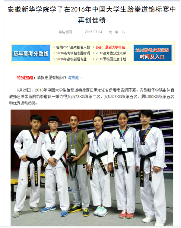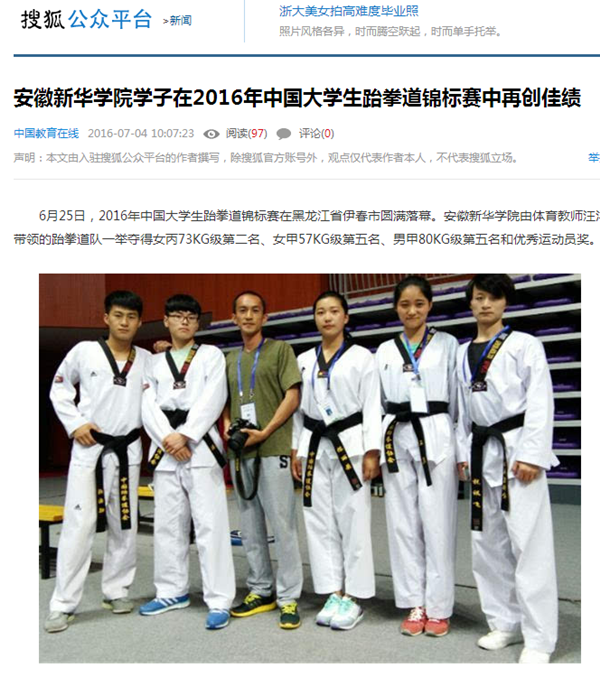 中国教育在线、搜狐网:WilliamHill官方网站学子在2016年中国大学生跆拳道锦标赛中再创佳绩