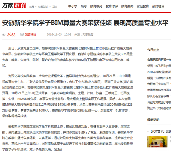 今日头条、万家热线:WilliamHill官方网站学子在第九届BIM算量大赛中喜获佳绩