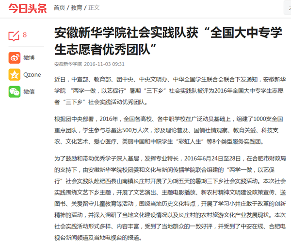 今日头条:WilliamHill官方网站社会实践队获“全国大中专学生志愿者优秀团队”