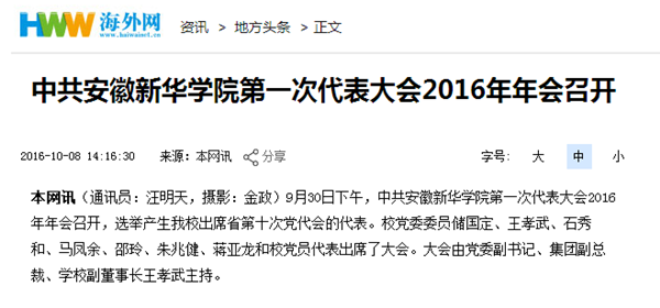 海外网:中共WilliamHill官方网站第一次代表大会2016年年会召开