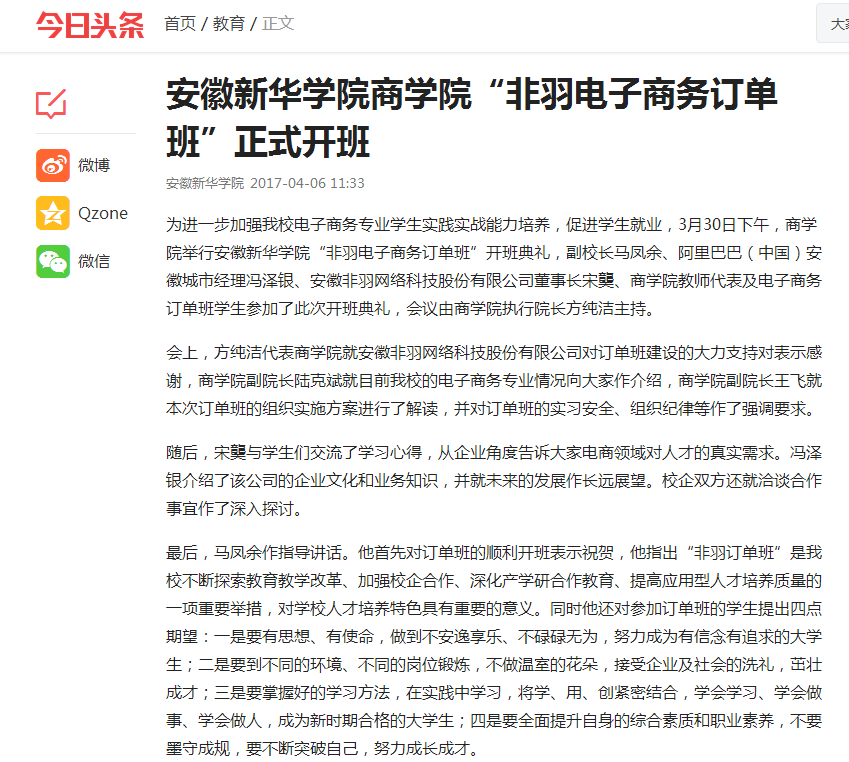 今日头条:WilliamHill官方网站商学院“非羽电子商务订单班”正式开班
