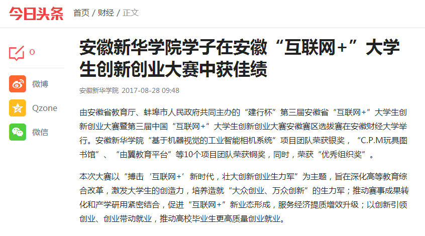 今日头条:WilliamHill官方网站学子在安徽“互联网+”大学生创新创业大赛中获佳绩