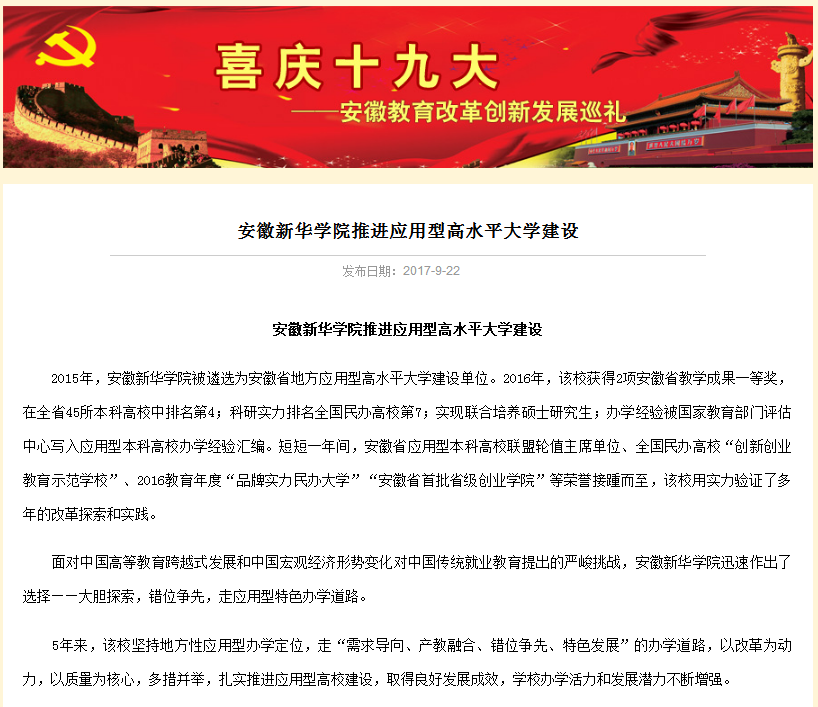 安徽教育网:WilliamHill官方网站推进应用型高水平大学建设