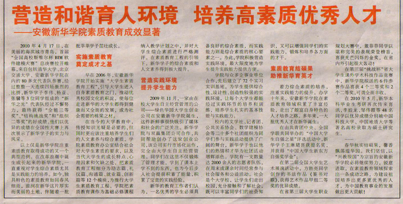 《安徽商报》:营造和谐育人环境 培养高素质优秀人才