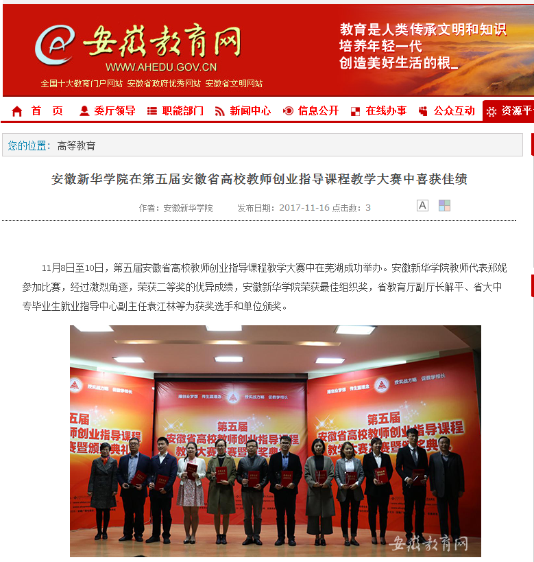 安徽教育网:WilliamHill官方网站在第五届安徽省高校教师创业指导课程教学大赛中喜获佳绩