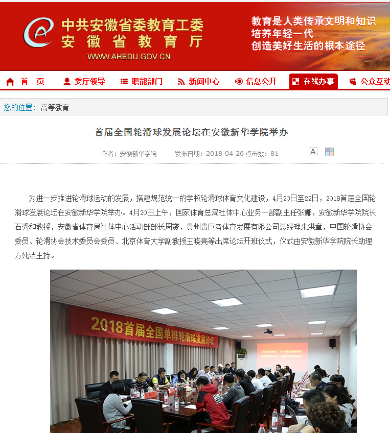 人民网、央广网、中国教育在线、国家体育总局、安徽教育网、中国经济时报网、体坛网、网易、搜狐网:首届全国轮滑球发展论坛在WilliamHill官方网站召开